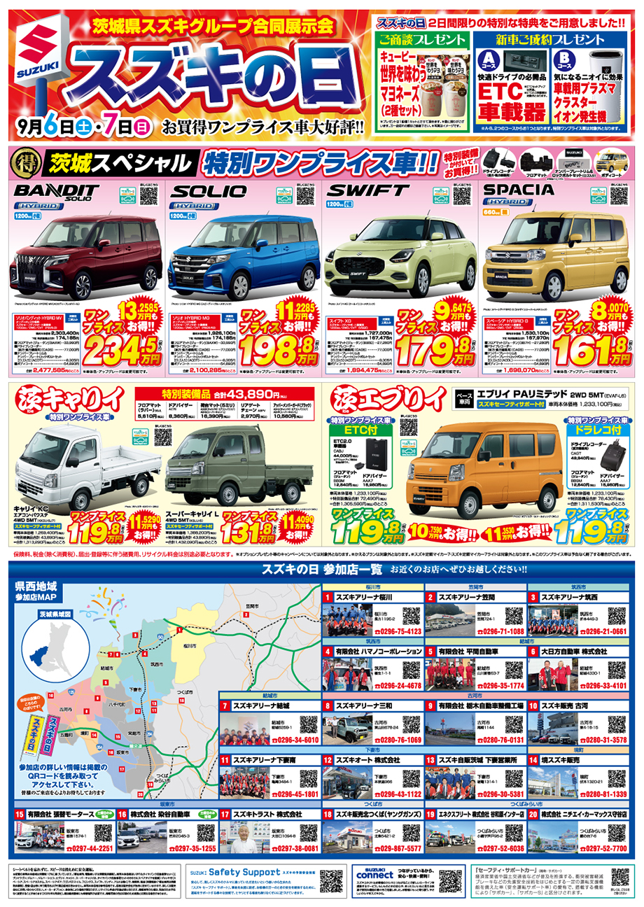 9月13日(土)・14日(日)・15日(月・祝)も『スズキの日』を開催します!
